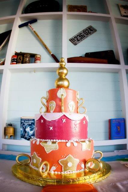 We’ve had so many Disney anniversary cakes, that I had trouble deciding what style to get for this extra-special anniversary. I tried to think of something that would tie back to our wedding without being a variation on that cake (since our first anniversary cake was pretty much un-toppable). So eventually I decided to ask if Aulani could replicate our wedding china pattern.